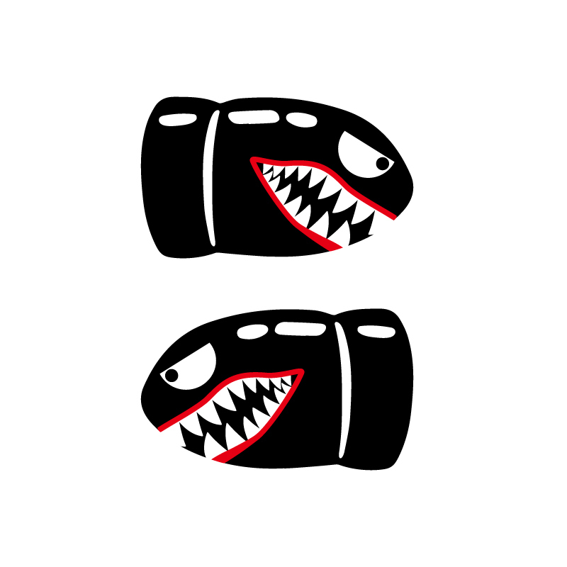 > ワンポイント ミサイルシャーク ステッカー 左右セット (8cm) 黒 ヘルメット かわいい 防水 おもしろ 爆弾 ボム シャークマウス missile