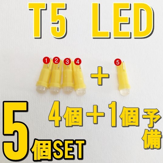 - 送料無料★最新型★T5/T6.5/T7 LED オレンジ アンバー 黄色★5個 LED電球★DC12V 照明/エアコン/パネル/シフト/室内/メーター★拡散型