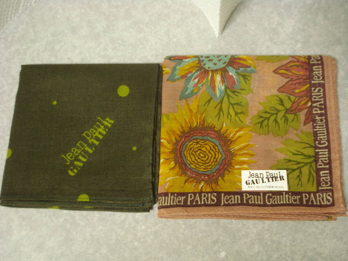 - ☆ ジャンポールゴルチエ ハンカチ 2枚☆ ひまわり 花柄 モスグリーン 緑 ドット柄