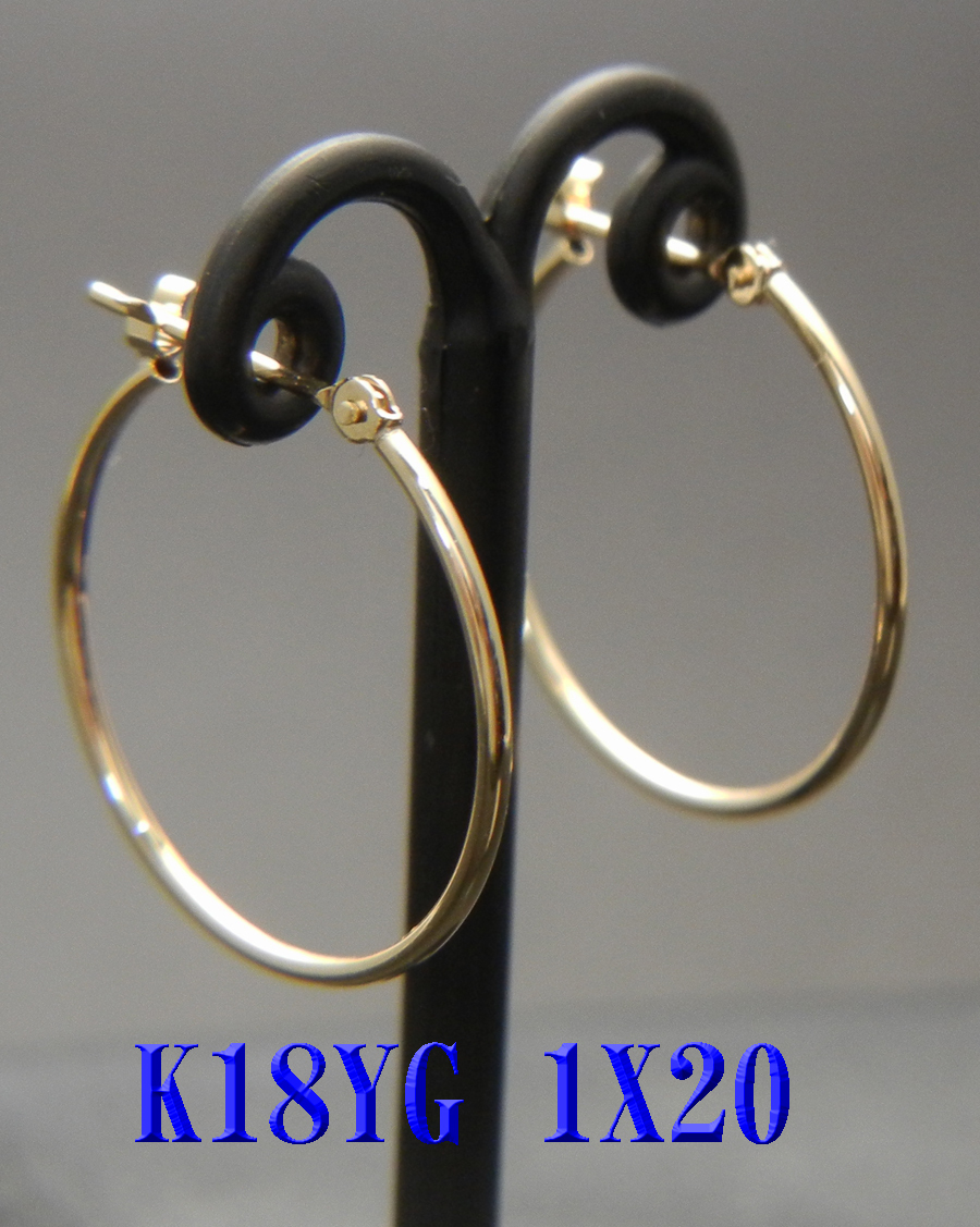 - 特別セール!K18 18金ゴールド 1x20mm フープピアス 新品 日本製 スナップピアス