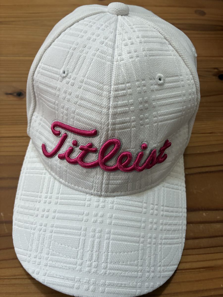 > Titleist ゴルフキャップ 美品 ピンクリボン 白 ホワイト 帽子 キャップ タイトリスト GOLF ゴルフウェアー チェック