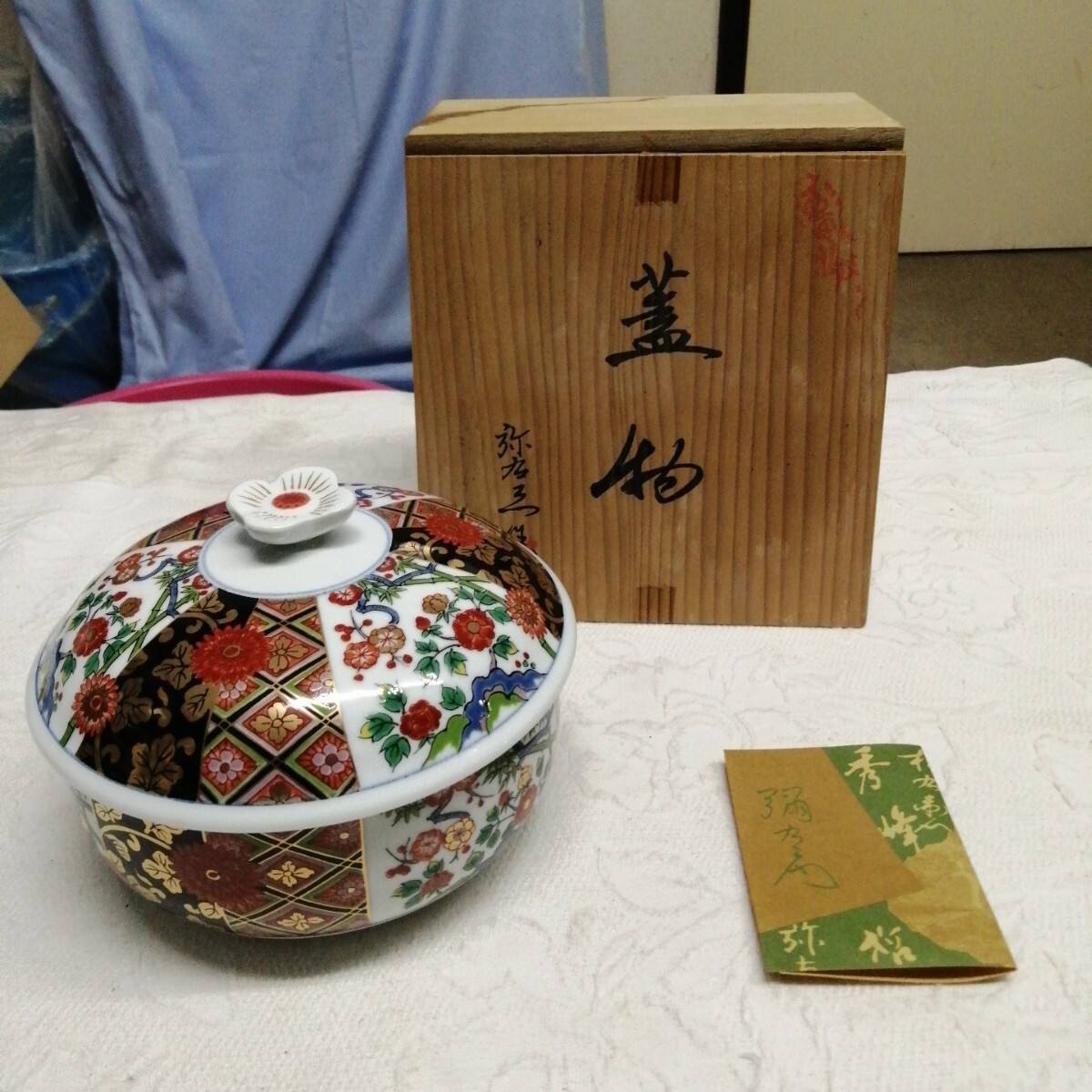 - 木箱入 有田焼 蓋物 彌右衛門 金彩 和食器 陶器 小物入 容器 菓子器 色