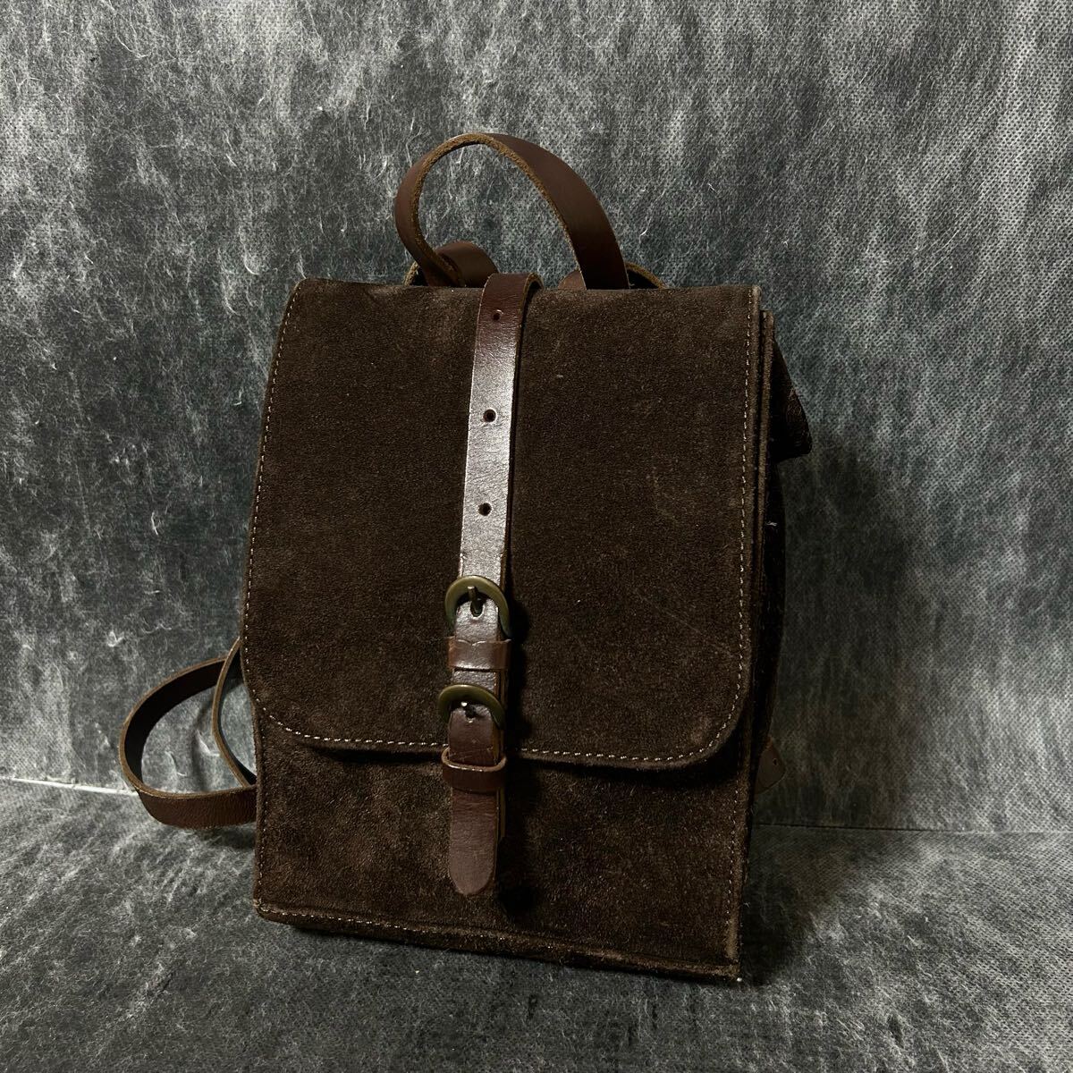 - イタリア製 リュックサック バックパック スエード 本革 レザー ブラウン ヴィンテージ 古着 *112