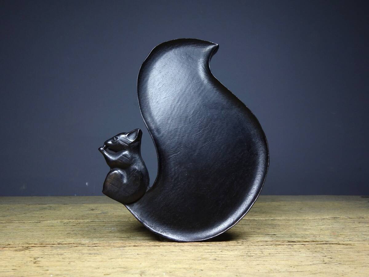 - 『館蔵珍品 檀木製 細密彫 松鼠茶盤 置物 賞物』稀少珍蔵品 古賞物 貴重物品 収蔵品 中国古美術 時代物 古董品