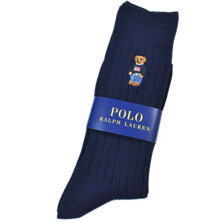 - ポロ ラルフローレン 靴下 1足 メンズ ブランド 紺 ネイビー ポロベア リブソックス 25-27cm