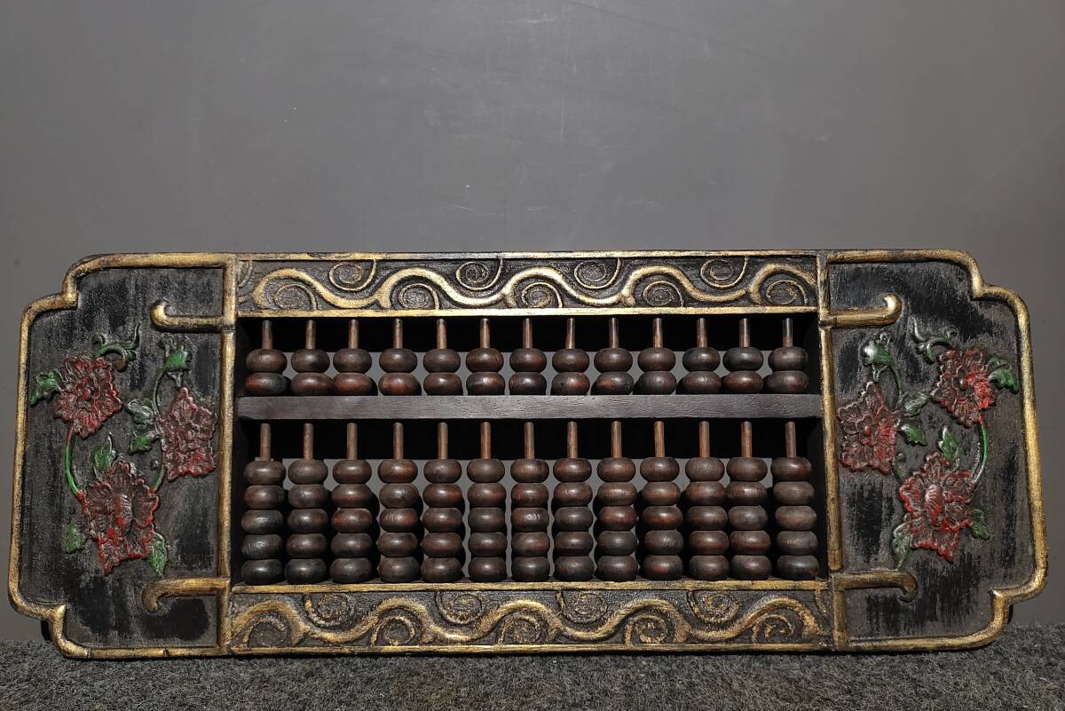 - 秘藏 清代 老楠木 漆器そろばん 花咲く富貴 書道具 文房具 時代物 中国古美術 細密彫 置物 賞物 唐物 文玩 821