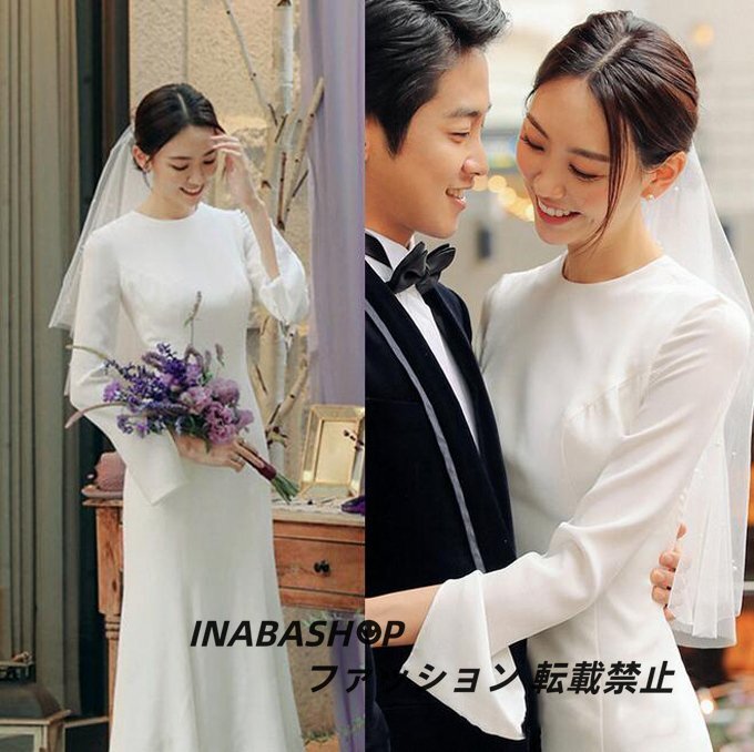 - 長袖 ウェディングドレス ウエディングドレス フィッシュテール ゆったりタイプマーメイド トレーンドレス レディースドレス 前撮り後撮り