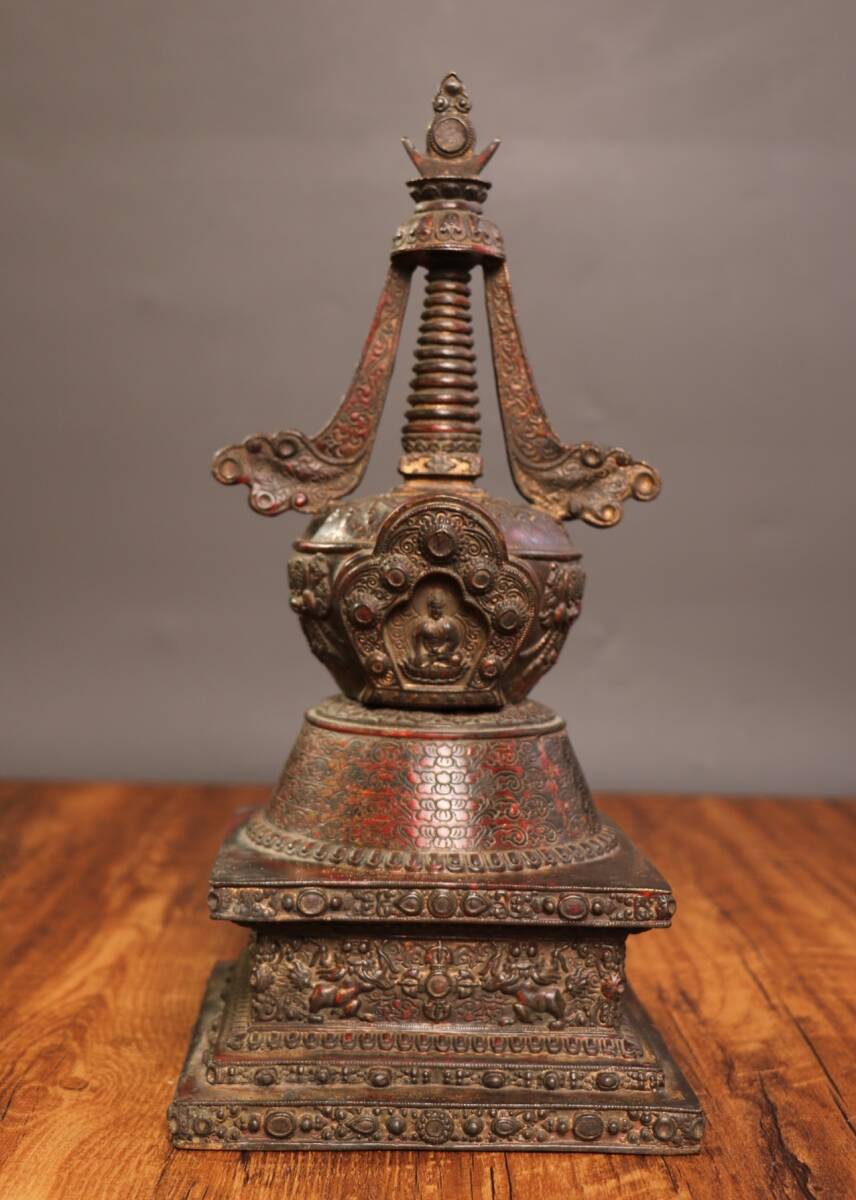 - 古銅 仏像 清時代 純銅 蒔絵釈迦如来仏 供仏宝塔 置物 立像 古物保証 銅製 神獣 置物 旧家整理品 中国古美術 子供置物 821