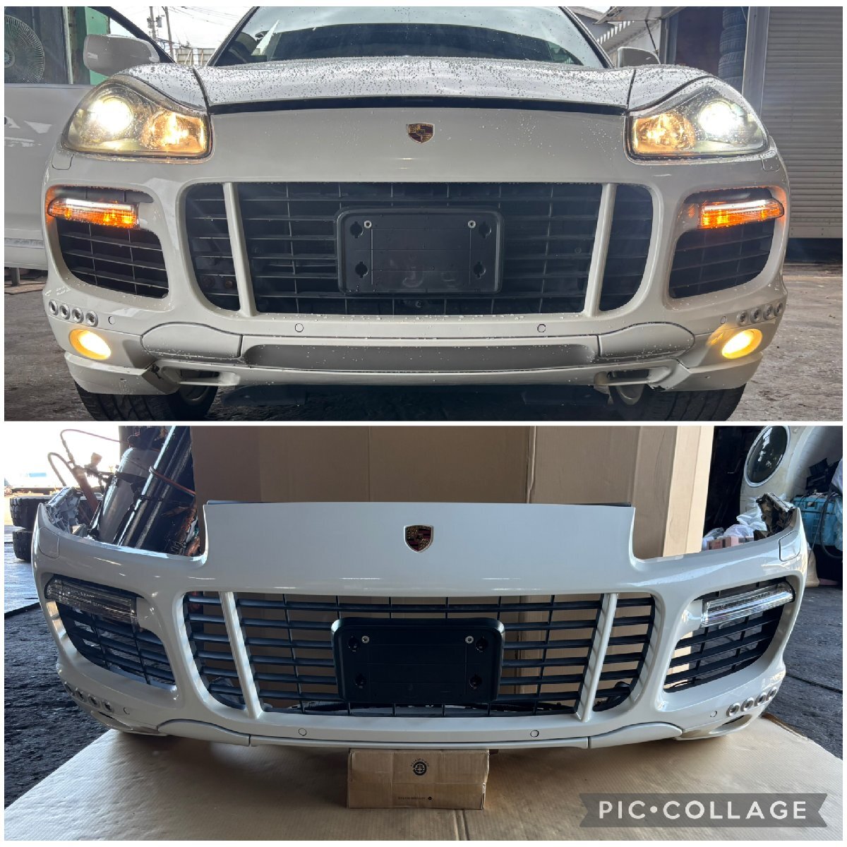 - ポルシェ カイエン GTS 9PAM5501 平成20年 957型 右H 純正 フロントバンパー フォグ/LEDウインカー【ホワイト系】凹みなし 点灯確認済み