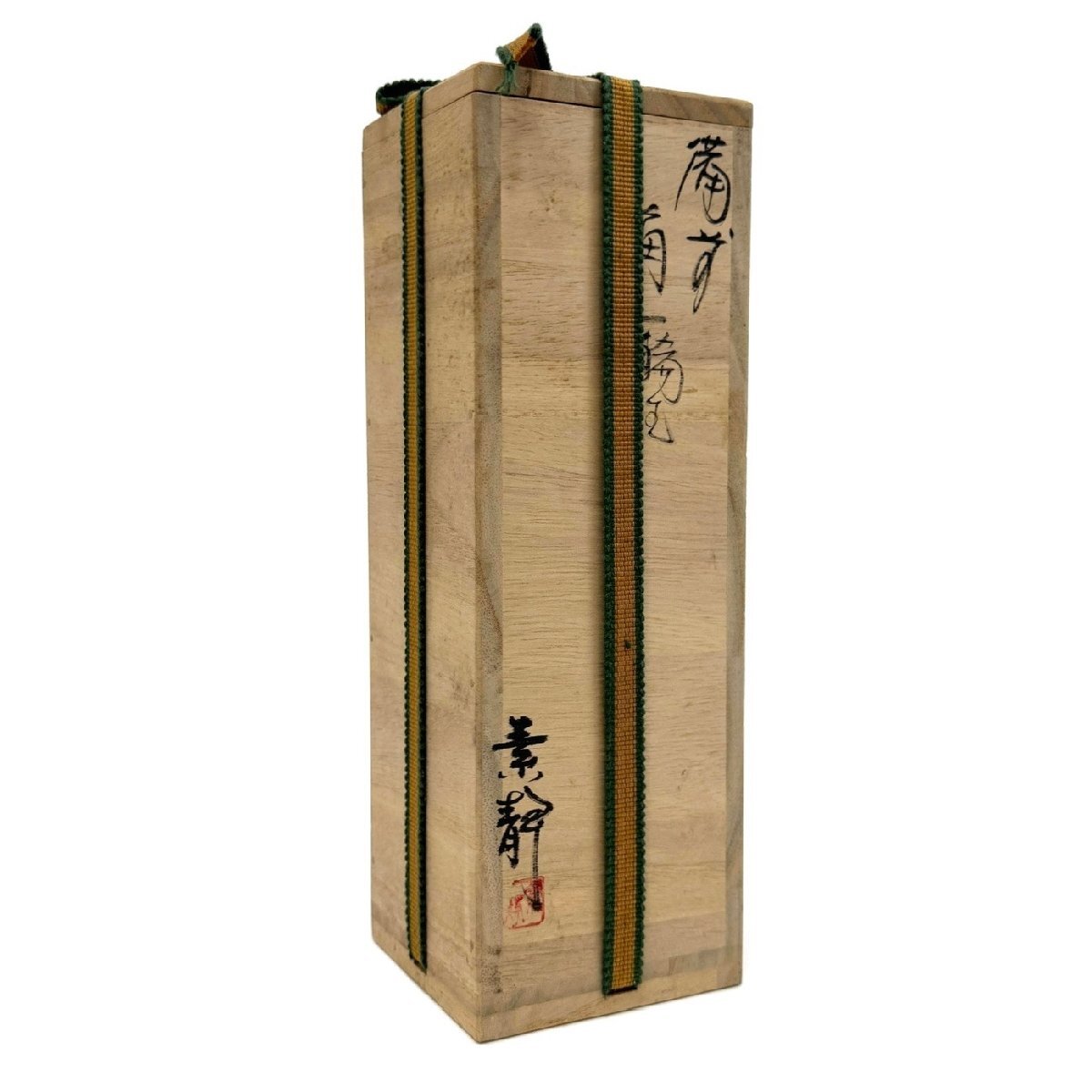 - 空箱 木箱 中古 備前 角一輪生 共箱 骨董品 ヴィンテージ レトロ インテリア 書道文字 筆文字 8.5cmx8.5cmx25cm 箱のみ