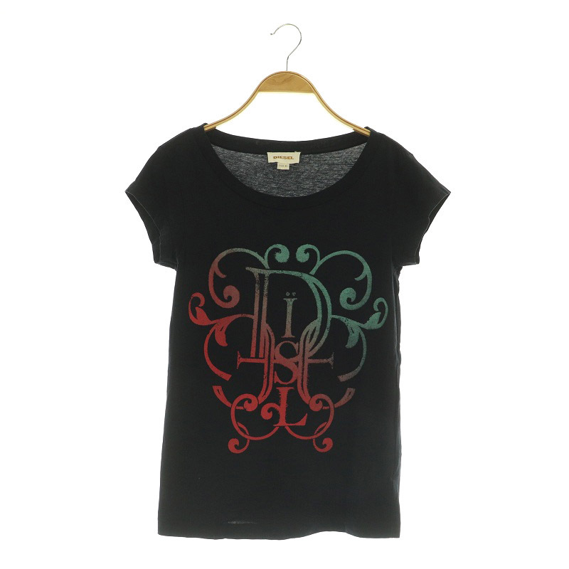 - ディーゼル DIESEL 半袖カットソー プリント XS ブラック /MY ■OS レディース