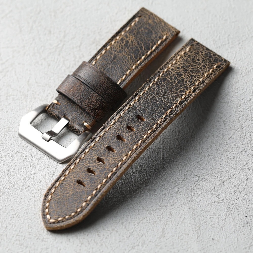 - 20MM 22MM 24MM 牛革 ヴィンテージ レザー 時計バンド メンズ レザーベルト ブラウン