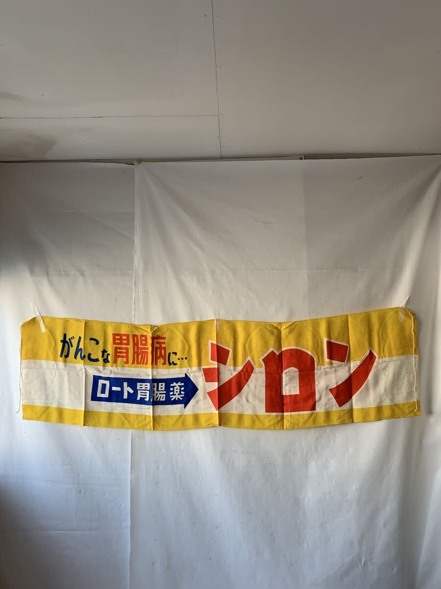 - 旧家蔵出し ロート胃腸薬シロンのぼり旗 昭和レトロコレクションのれん店頭販促品アンティークビンテージ当時物インテリアディスプレイ飾り