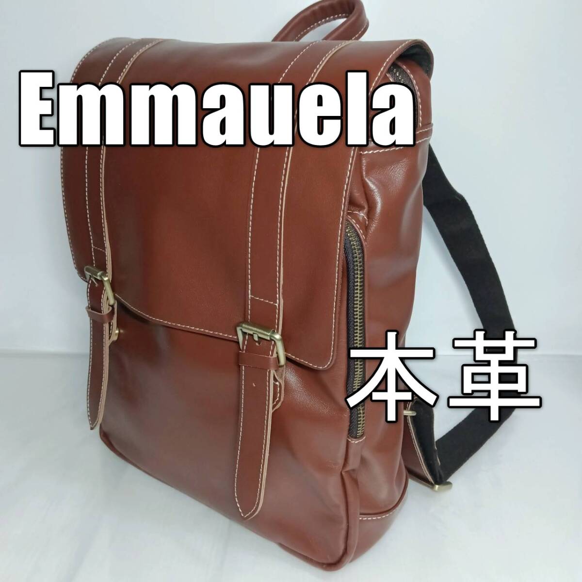 - Emmauela 本革 リュックバッグ レザー ブラウン 無地 通勤 通学 綺麗 イタリア ミラノ発 ブランド 美品 綺麗 モダン 高級感