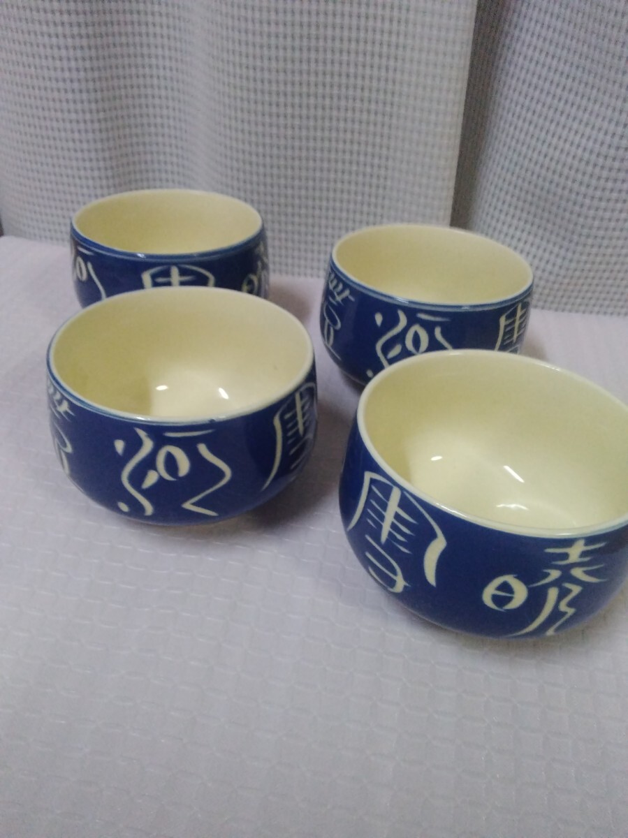 - 「値下げ」藍色【湯呑】4個セット◆径9cm 高さ6.5cm