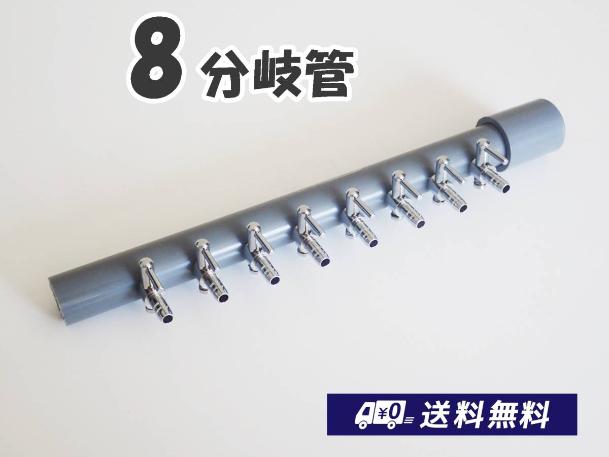 - 【送料込】ブロワ接続用 エアーコック 8分岐管 一方コック8連1列 シュリンプ・金魚・メダカ水槽のエアー分岐に ポンプ圧調整に