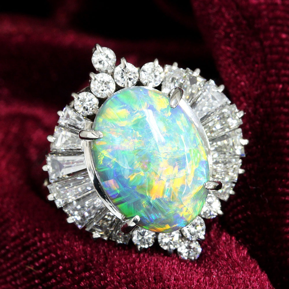 - 【製造大卸☆最安値】 3ct 天然 ブラックオパール 天然 ダイヤモンド プラチナ PT900 リング【鑑別書付】