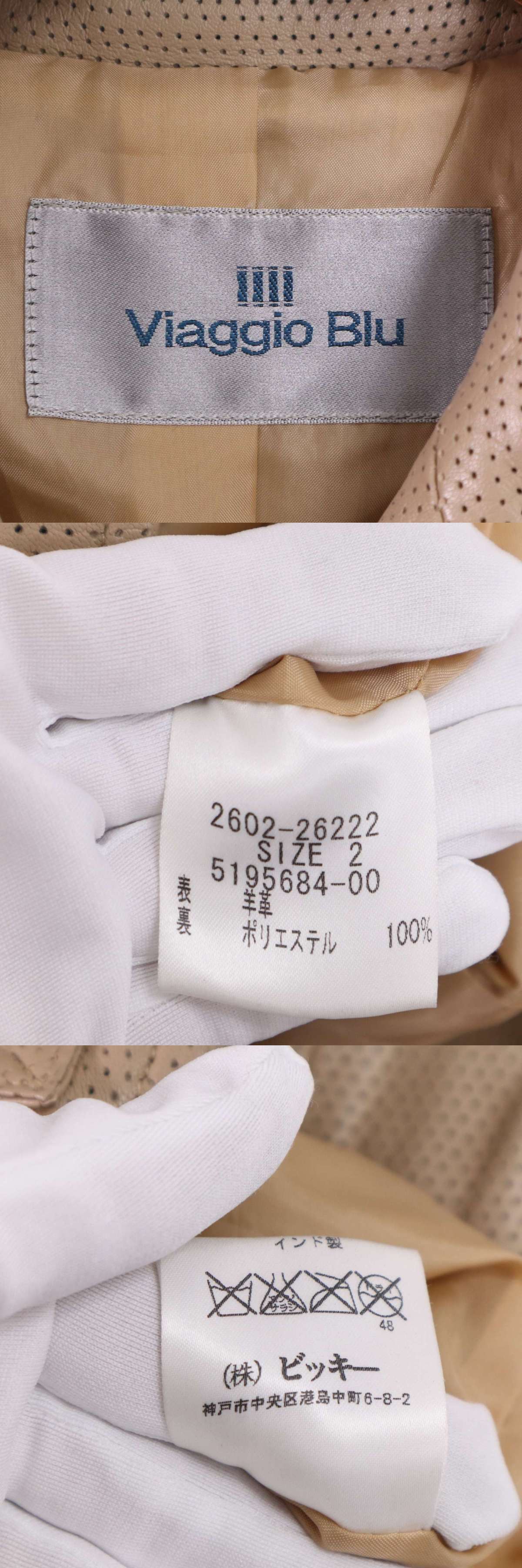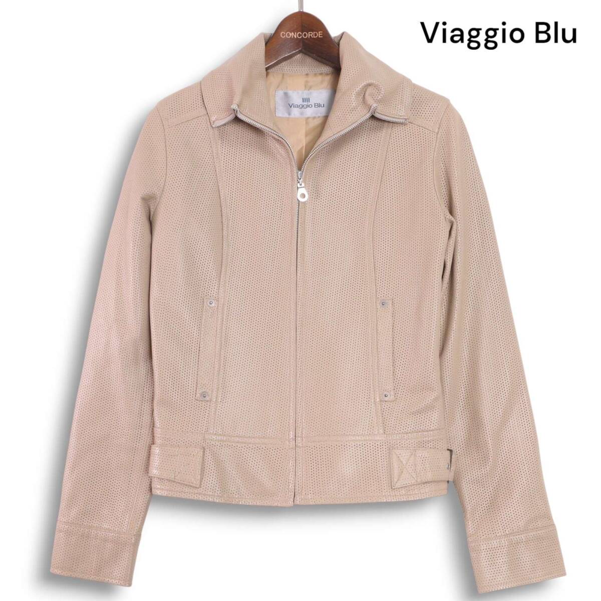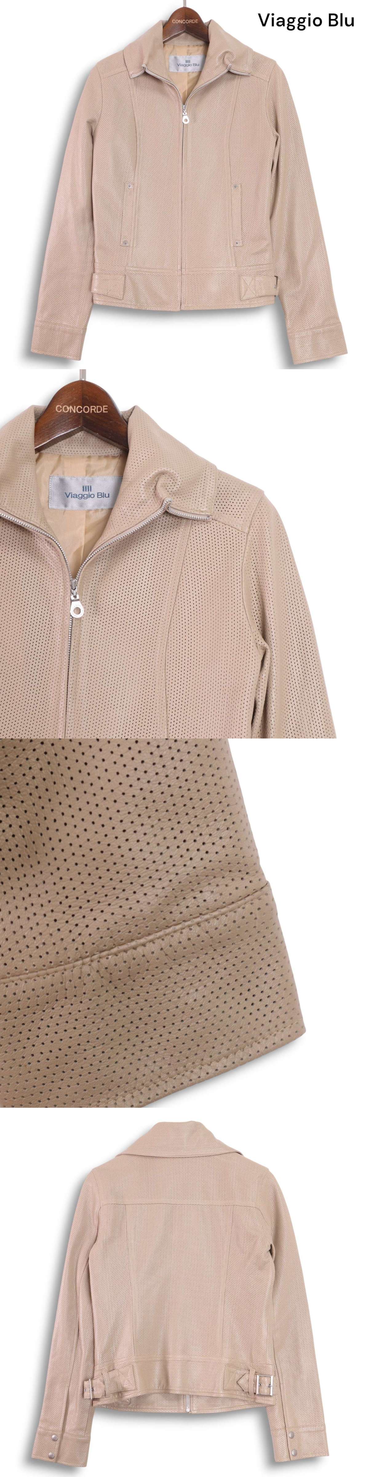 - Viaggio Blu ビアッジョブルー 通年★ 羊革 リアル ラム パンチング レザー ライダース ジャケット Sz.2 レディース