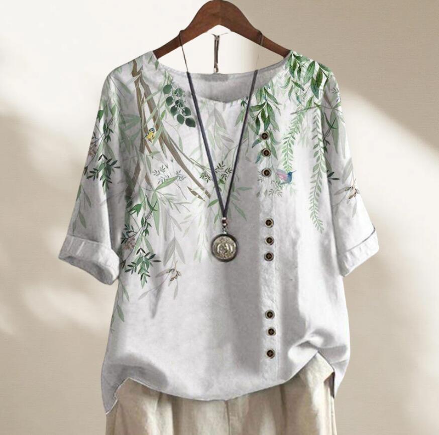 - 新入荷*レディース 半袖 シャツ ブラウス 花柄 チュニック 大きいサイズ トップス ゆったり プリント柄 *03 *