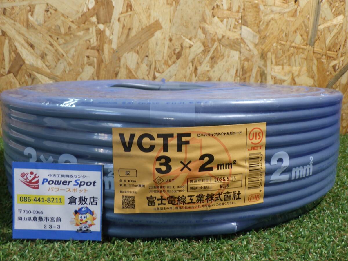> 富士電線 VCTF 3 x 2mm 100m 灰 赤白黒 ビニルキャブタイヤ丸形コード 2025年5月製造 多少の傷みあり 未使用品 250822