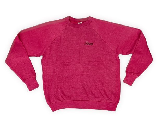 > 80's 米国製 Heaithknit ヘルスニット ビンテージ スウェット ソリッド ネーム刺繍 ラグラン 杢 バーガンディ XL [la-1389]