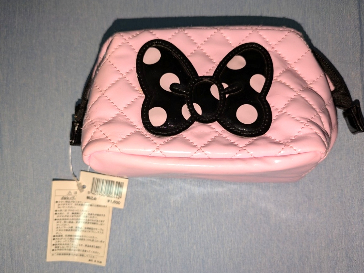 - 《訳ありタグ付》ディズニーリゾート ミニーマウス ピンク エナメル 化粧 ポーチ 小物入れ