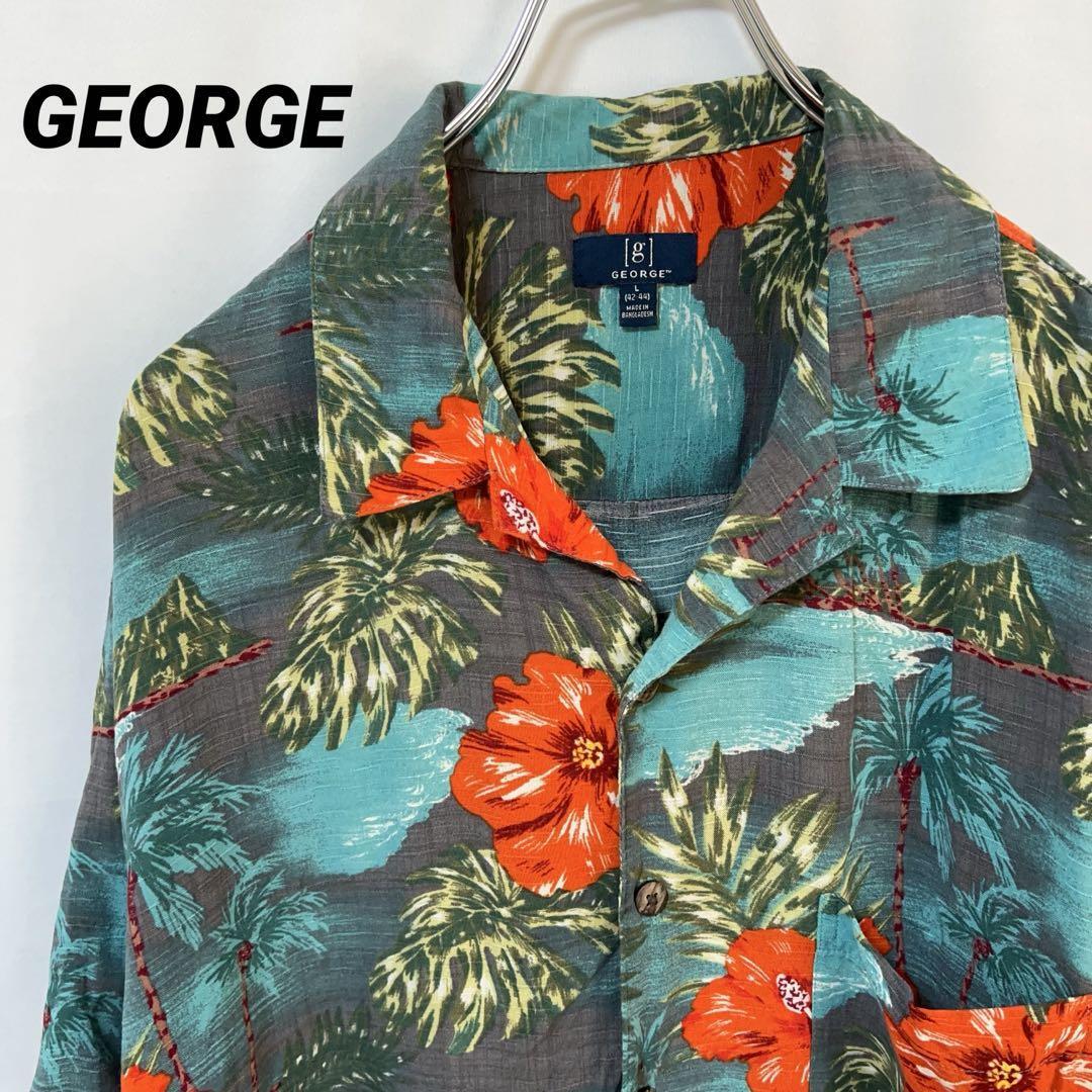 - N-5529 GEORGE ジョージ アメリカ古着 アロハシャツ ハワイアンシャツ トロピカル 花柄 オープンカラー 開襟 半袖 レーヨン L メンズ