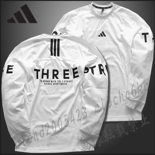 > ■新品【adidas】アディダス ゴルフに最適 背面BIGロゴ ルーズフィット 速乾生地 クルーネック 長袖シャツ■WH/2XL(3L)