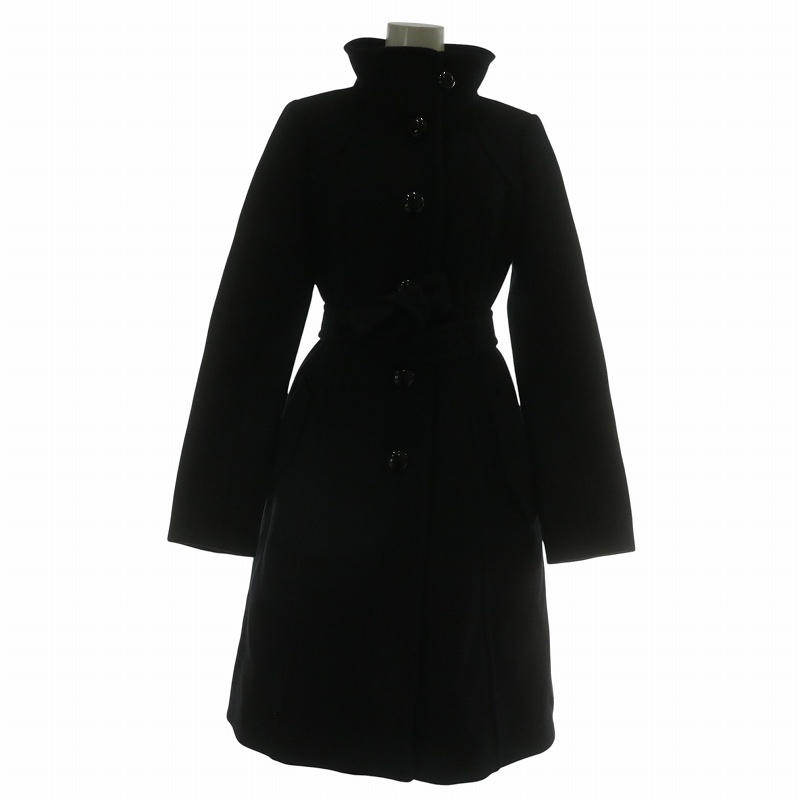 > BURBERRY BLUE LABEL コート アウター ウール アンゴラ混 ロング ハイネック 裏地チェック柄 ベルト付き 38 M 黒 E1B12-409-09