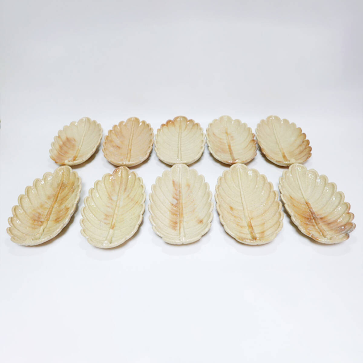 - 13代楽吉左衞門惶入造 砂葉葉皿 10客 共箱 うつわ/食器 TUT043