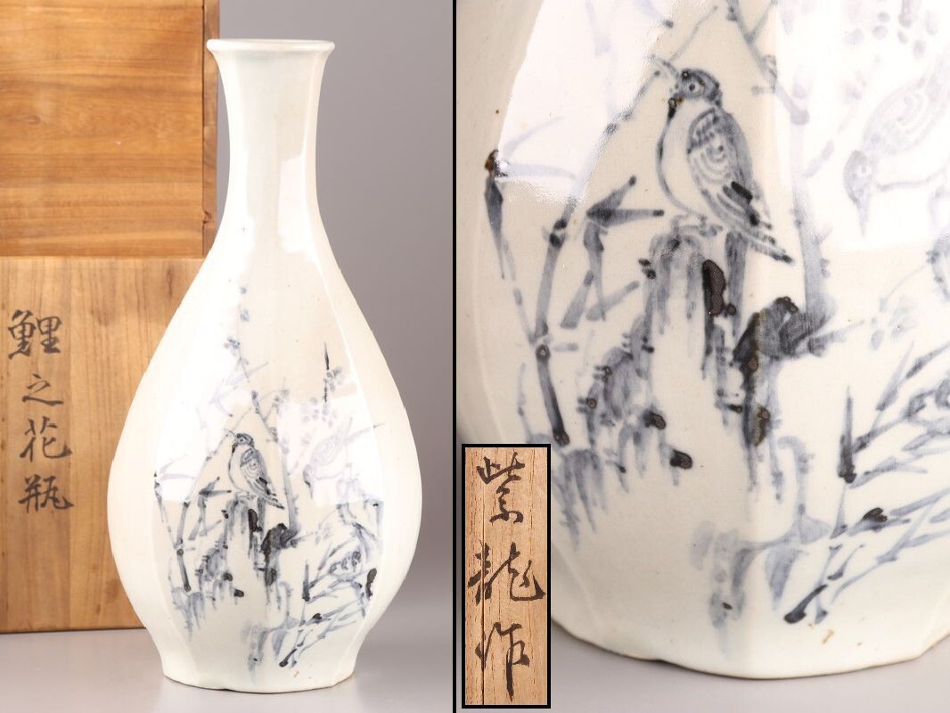 - 古美術 朝鮮古陶磁器 李朝 染付 面取 花瓶 共箱 時代物 極上品 初だし品 D4123