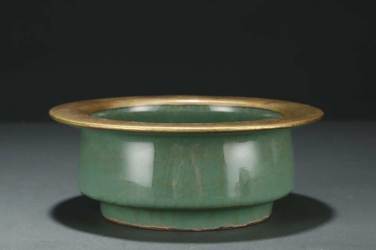 - 「宋 官窯 陶磁器 青釉包金口 水洗」染付 置物 擺件 古賞物 中国古美術 旧蔵出