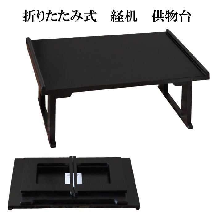 - 折りたたみ式 和机 経机 供物台 ブラック <神具 お盆 お彼岸 仏壇 仏具 折り畳み 折畳 法事 供養台 6027>
