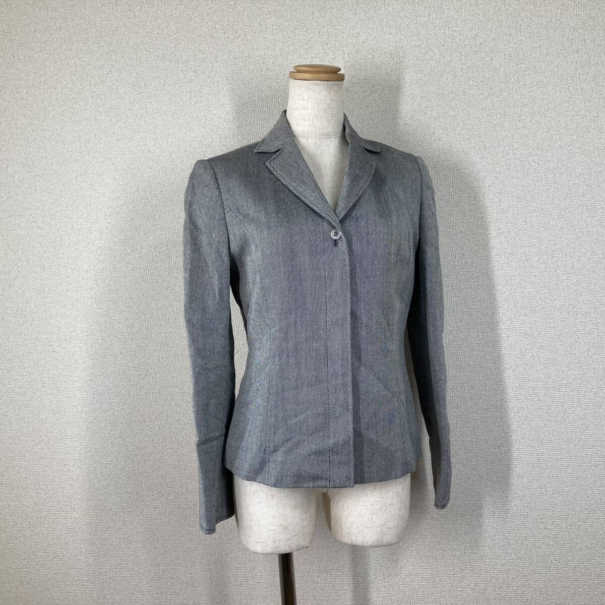 > 美品【ニューヨーカー】テーラードジャケット グレー 7 比翼 背抜き シルク 日本製 ビジネス オフィス NEWYORKER スーツ フォーマル