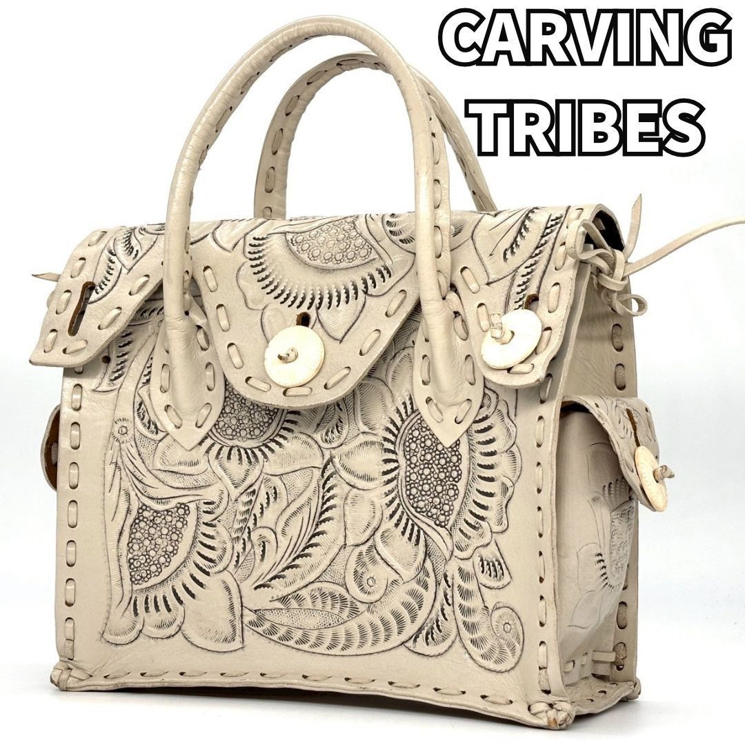 > 1円★訳あり CARVING TRIBES カービングトライブス マエストラ トートバッグ オールレザー ステッチ 本革 レディース アイボリー
