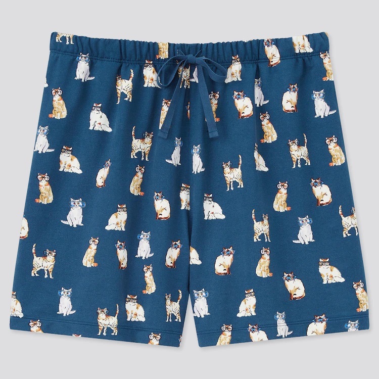 > 新品 ユニクロ ポール & ジョー ラウンジ ショートパンツ PAUL & JOE ショートパンツ 猫 ブルー Sサイズ 定価1550円
