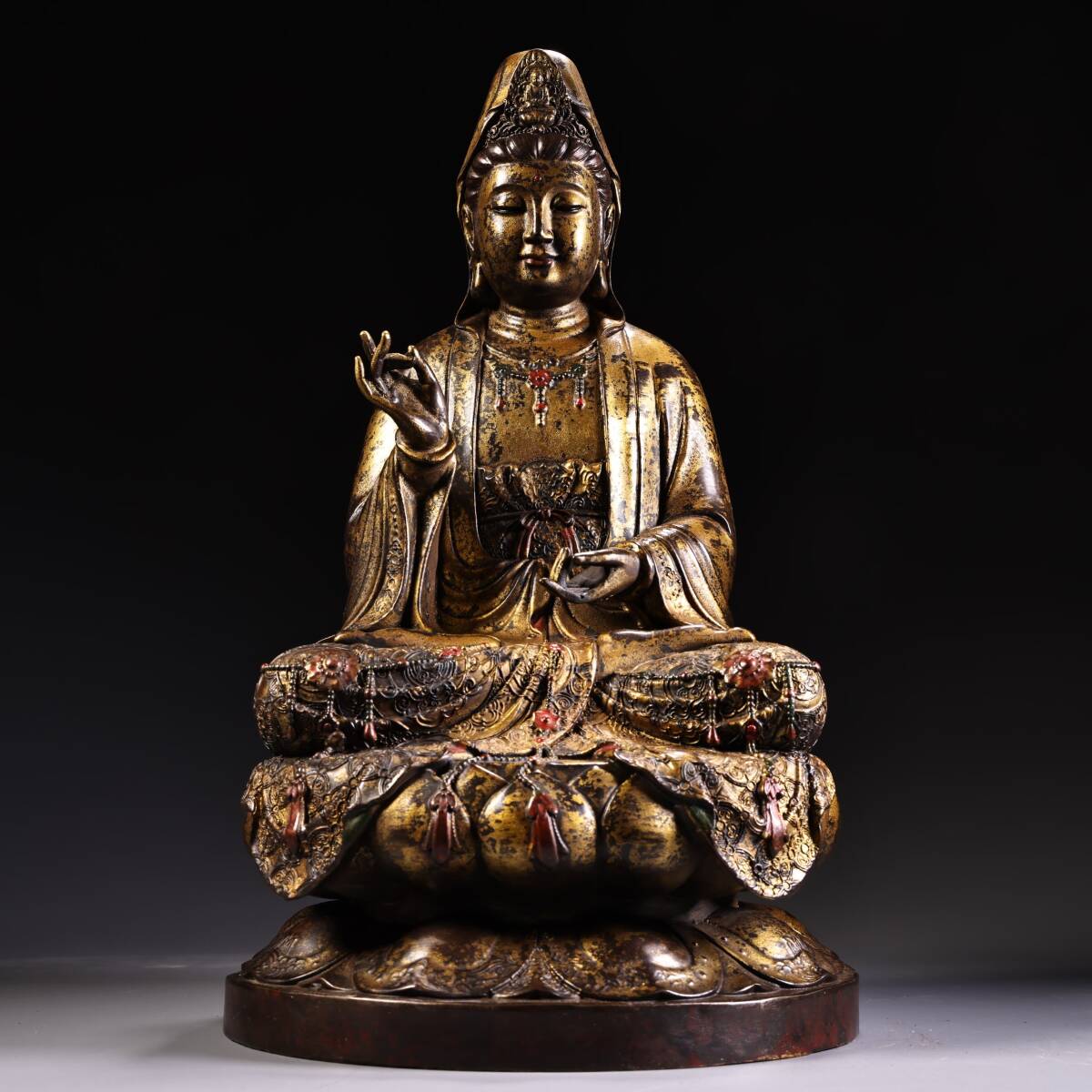 > 唐物 清 乾隆年製 純銅 全銅 泥金観音菩薩 仏像 奉納されていた 供養品 銅製品 銅器 極細工 古美術品 時代物 中国古玩 骨董品 D68
