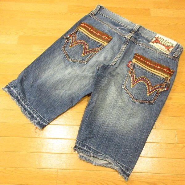 > ◎良品!EDWIN XV エドウィン 4545 ウエスタン調 デニム ハーフパンツ ショートパンツ USED加工 カットオフ メンズ 紺 34サイズ◆PA3636