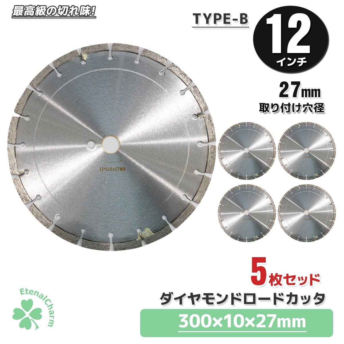 - 【送料無料】ダイヤモンドロードカッター 5枚セット 12インチ(約300mm)穴径27mm 調整リング付 コンクリート 道路切断 乾式/湿式対応