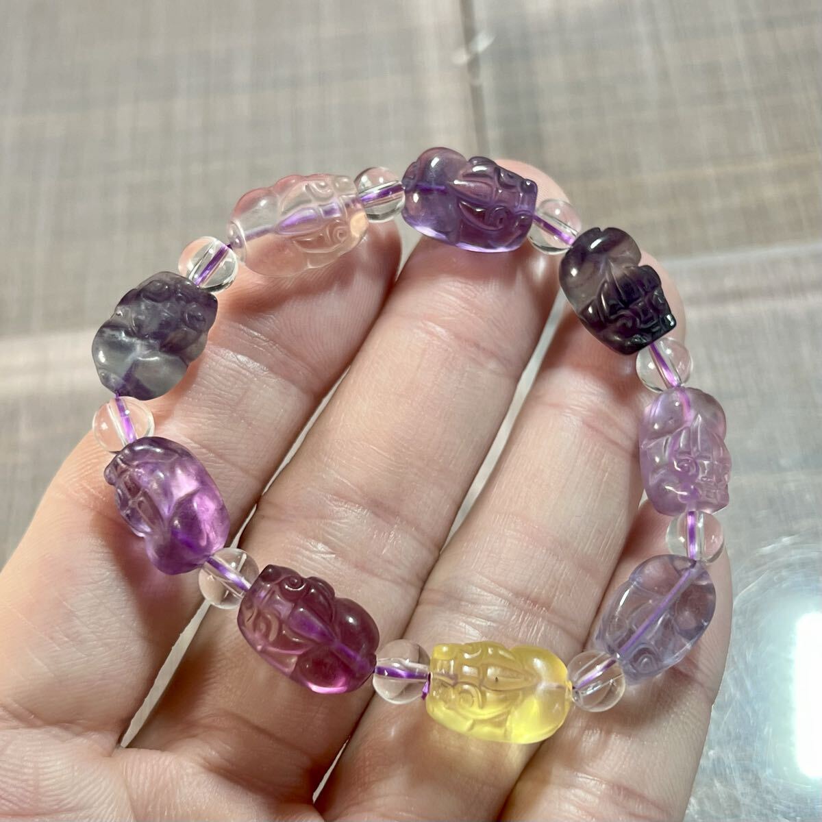 - 高品質 貔貅付きマルチカラーフローライトブレスレット 2-2