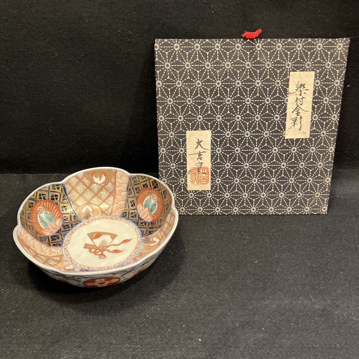 - 染付金彩 菓子鉢 大吉窯 成化年製 箱入