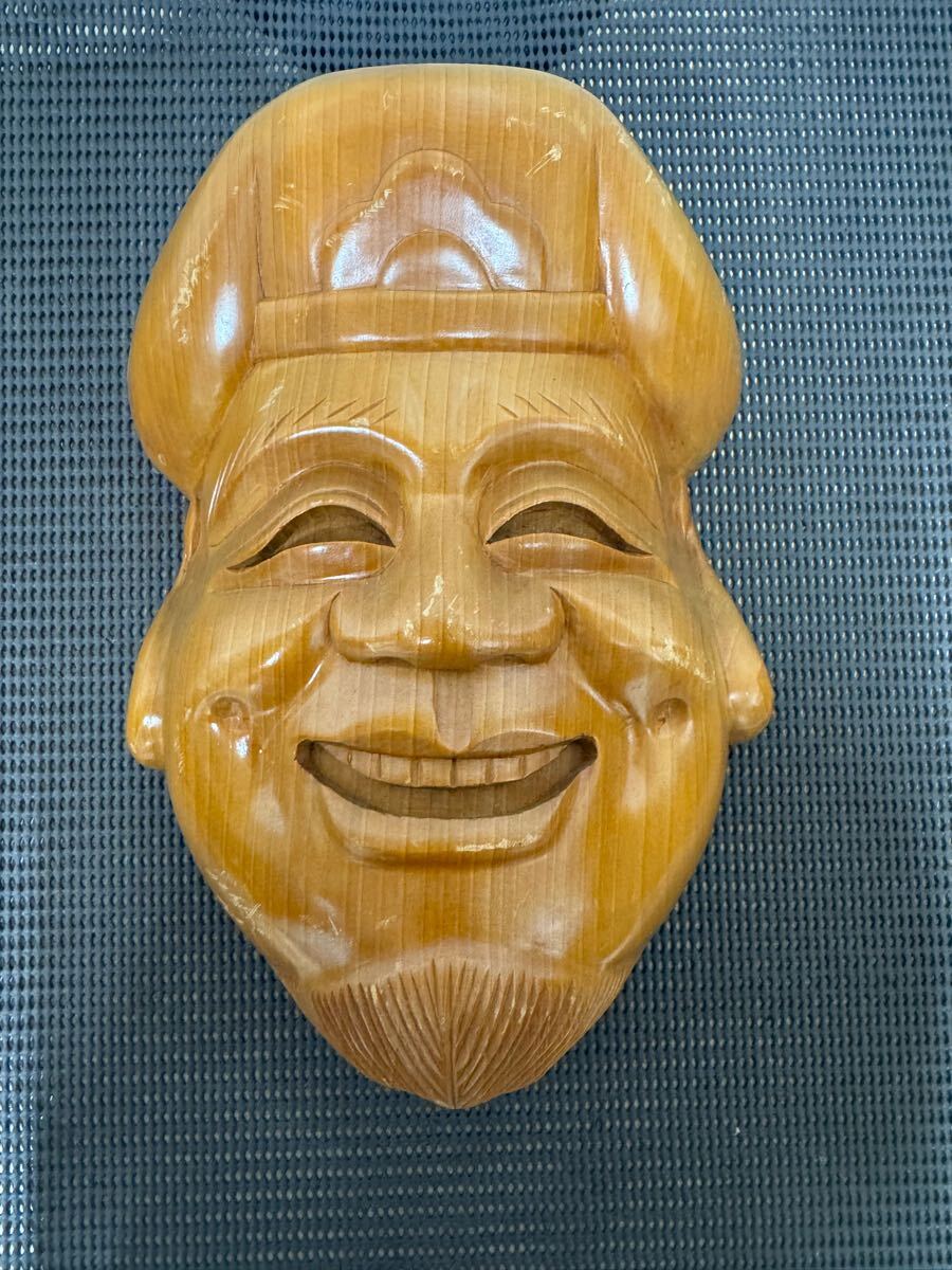- 木彫 大黒天お面 神楽面 七福神 仏像 レトロ 壁掛け 壁飾 縁起物 D-721