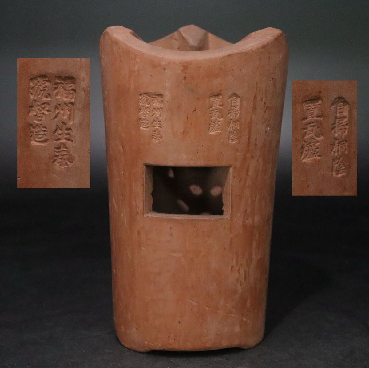 > 福州生泰號督造 「 自掃桐陰置瓦炉 」 人参手 涼炉 / 中国美術 茶器 煎茶道具 唐物 朱泥 紫砂 紫泥 .B962