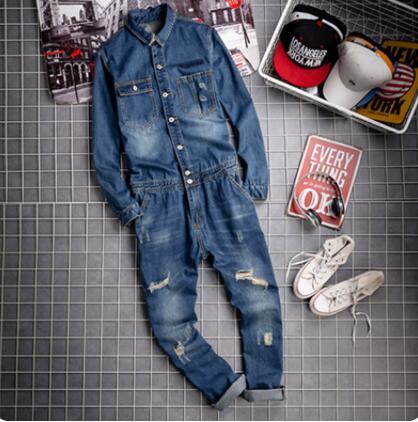 - 上質メンズサロペット オーバーオール デニム オールインワンジーンズ つなぎ サスペンダーズボンペインター作業服ダメージ M~2XL選択/1点