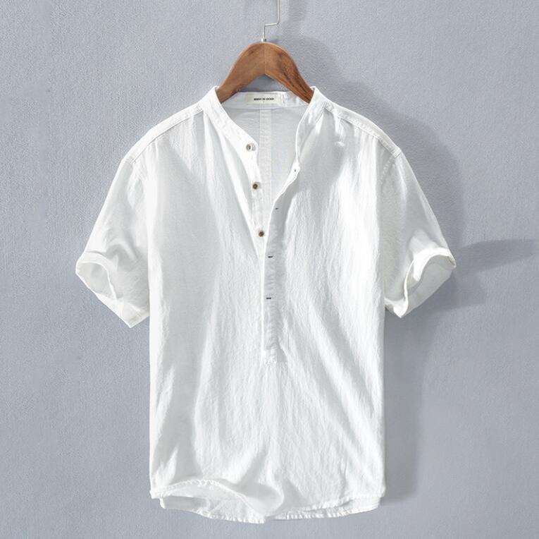 - 新入荷シャツ半袖 メンズ リネン トップス カジュアルシャツ 開襟シャツ麻綿カプリシャツ T-シャツ ファッション サマーシャツ ホワイト M
