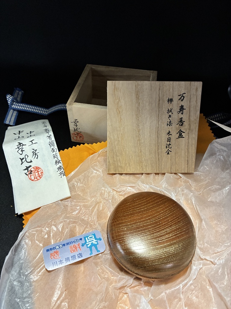 - 中山幸比古作「万寿香合/木目沈金/欅製/2.5寸分/拭き漆/ネジ式/桐箱入/中山工房/加賀蒔絵」漆工芸「90516」川本仏壇店/川本仏