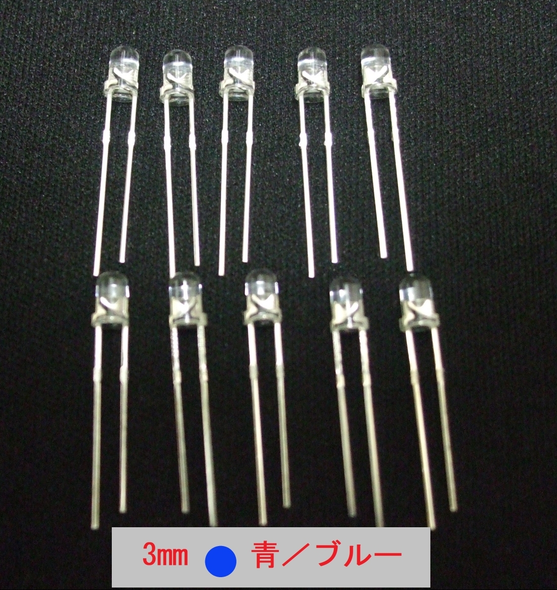 - 高輝度発光ダイオード 発色:青(ブルー) 3Φ(3mm)10個セット 管-C3B