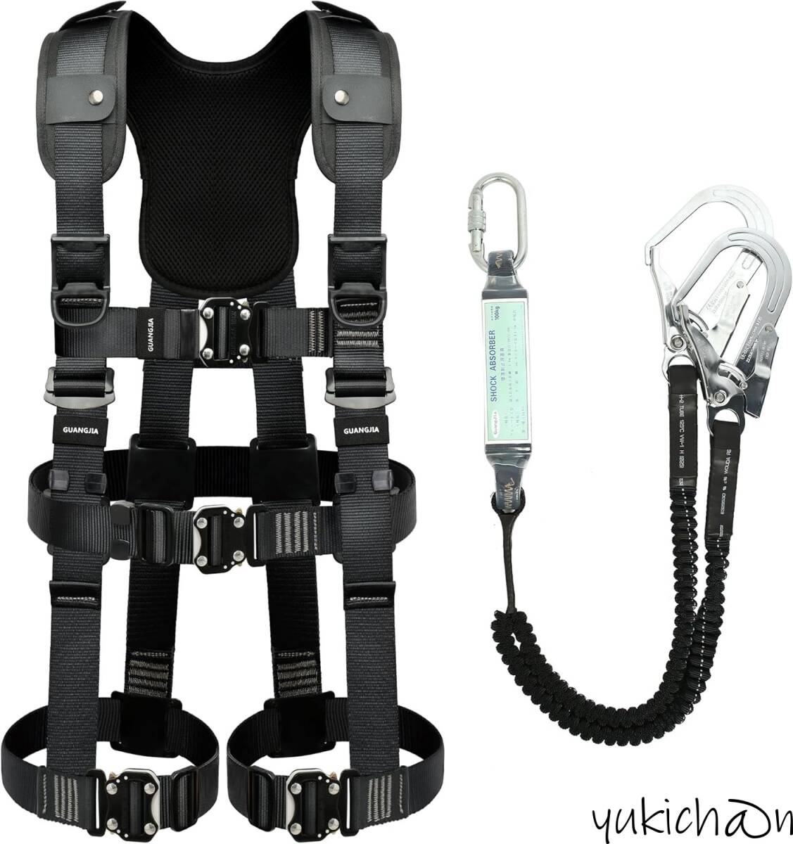 - フルハーネス安全帯 セット 肩パッドタイプ 新規格 脱着簡単 ワンタッチバックル ハーネス安全帯 ランヤード付き 2丁掛 墜落制止用器具