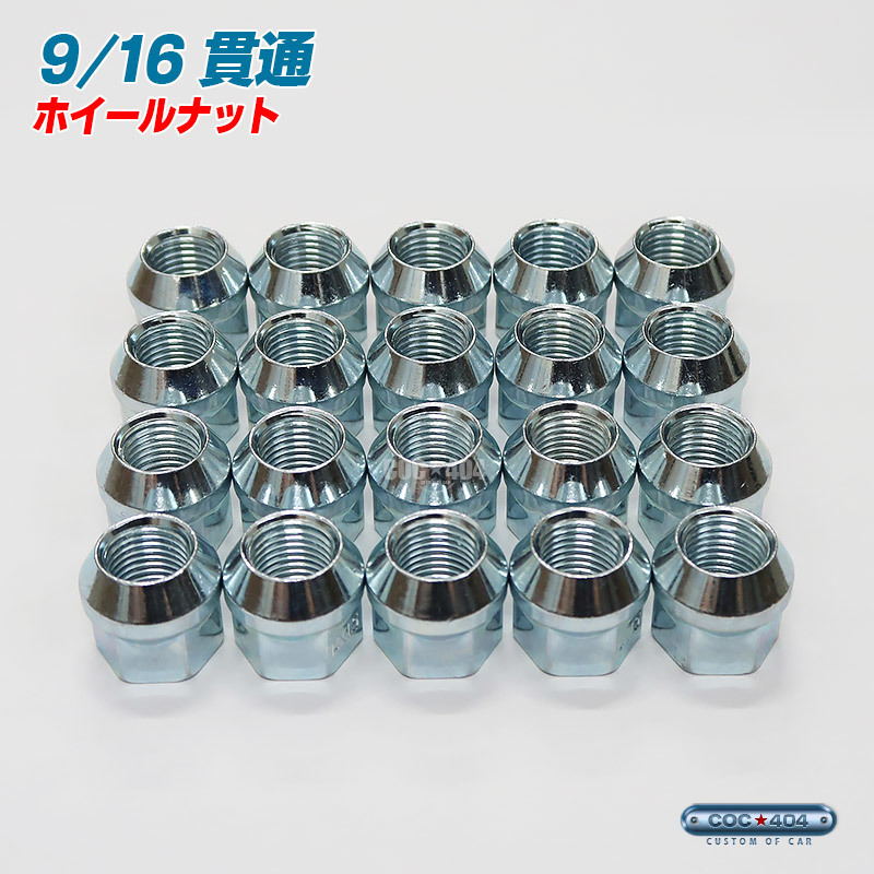 - 9/16 9-16 ホイールナット スチール製 貫通 シルバー【20個】ダッジ ラム トラック バン/デュランゴ/シボレー アメ車など