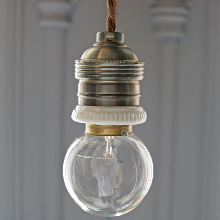 - 1940年代 フランス アンティーク ロウカラー 陶器 フランジ ソケット ランプ D*/吊り下げ 英国 北欧 照明 真鍮 カフェ アトリエ ライト